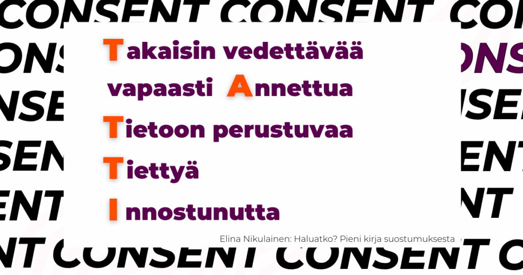 TATIn toinen kirjain A viittaa sanaan Annettua, sillä suostumuksen tulee aina olla vapaasti annettua.