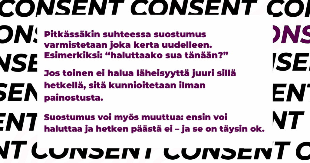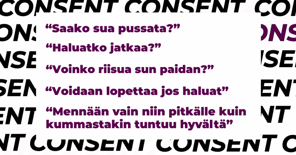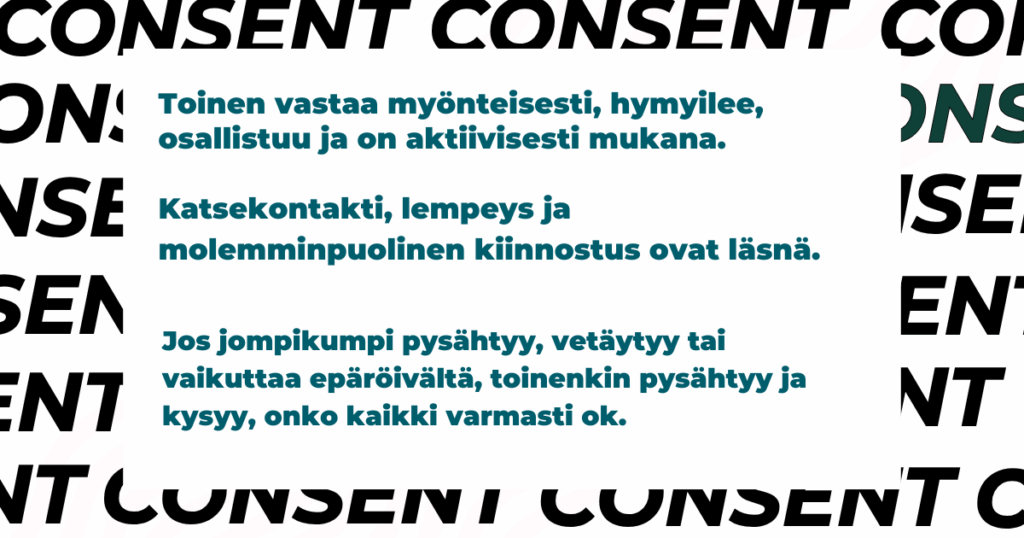 Seksi ja läheisyys voivat jatkua turvallisesti vain, jos kaikki osapuolet haluavat olla mukana omasta tahdostaan.